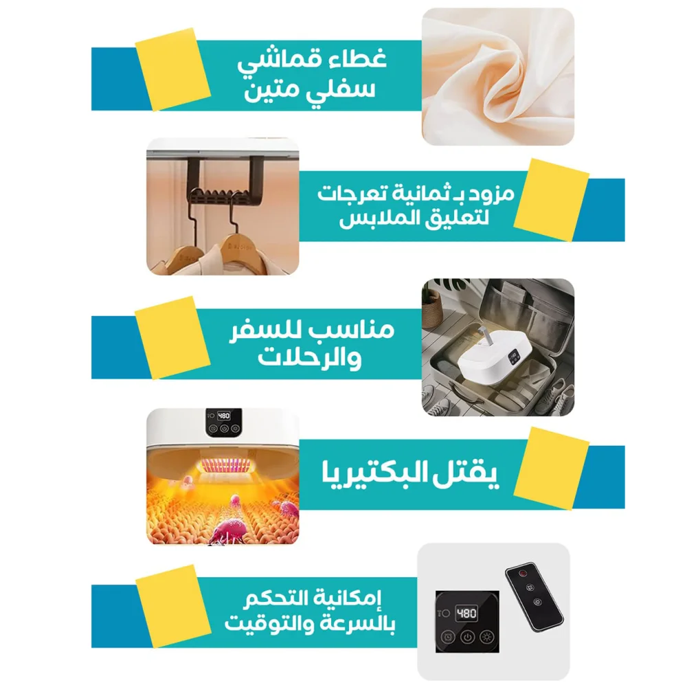 كفاءة وسرعة: يجفف ملابسك بسرعة، مما يوفر لك الوقت والجهد.