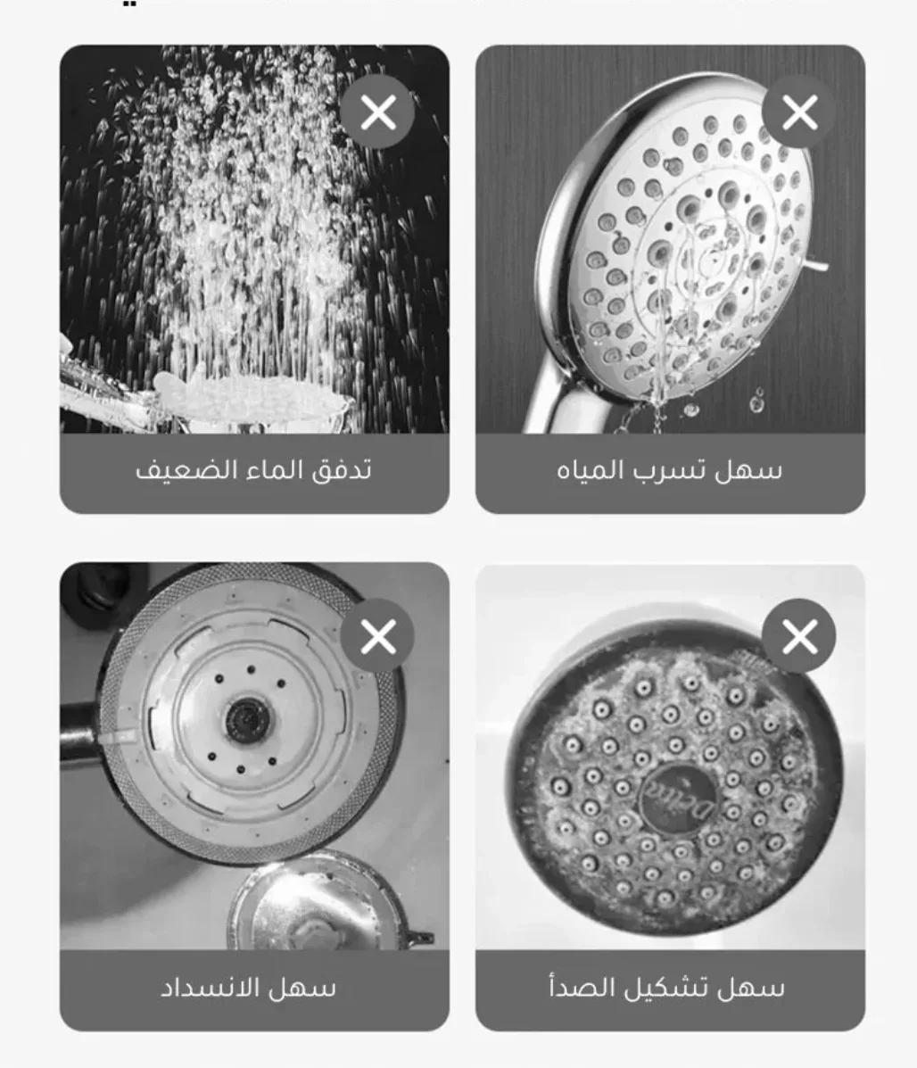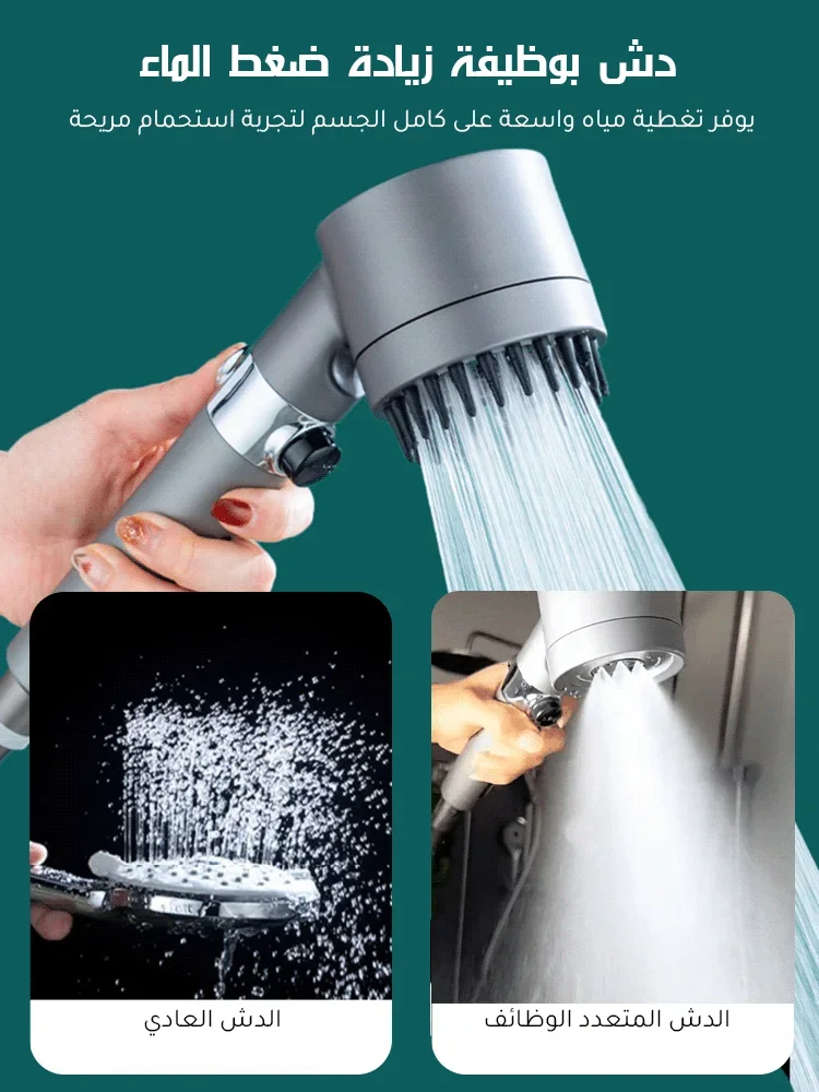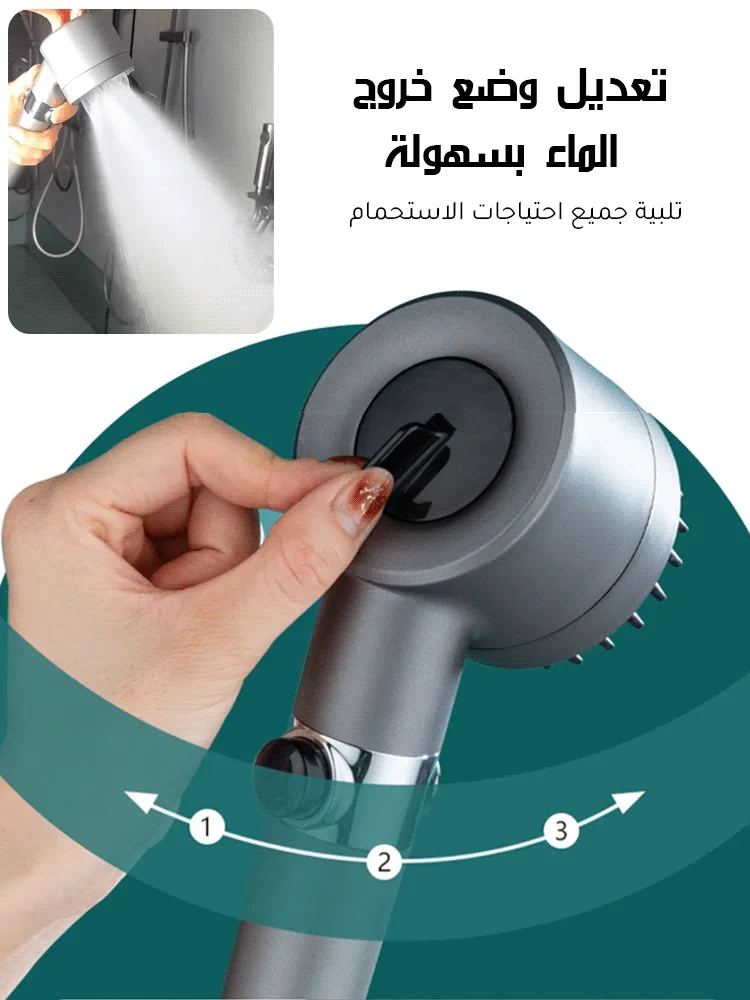 رأس الدوش متعدد الأنماط مع فلتر تنقية و حامل جداري مرن مع أنبوب معدني متين. تصميم عملي وأنيق لتحويل استحمامك إلى تجربة فريدة!