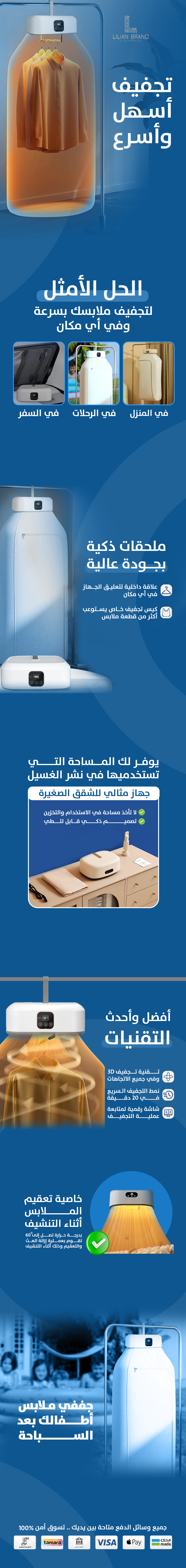 - يعتمد تقنية التجفيف بالأشعة فوق البنفسجية، مما يجعله مجفف ملابس قابل للطي مبتكرًا وعمليًا.