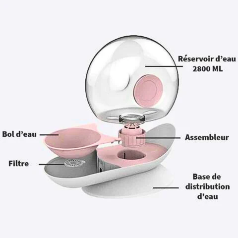 إن موزع المياه للقطط سهل الاستخدام للغاية، فقط قم بملء زجاجة المياه، ثم قم بتثبيتها على حاملها وانتهيت!