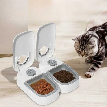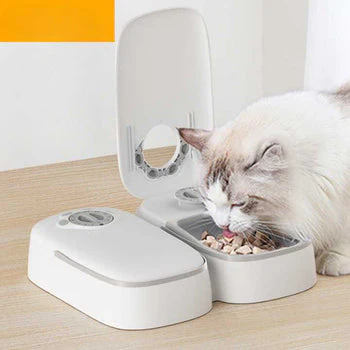 وحدة تغذية القطط الأوتوماتيكية باللون الرمادي